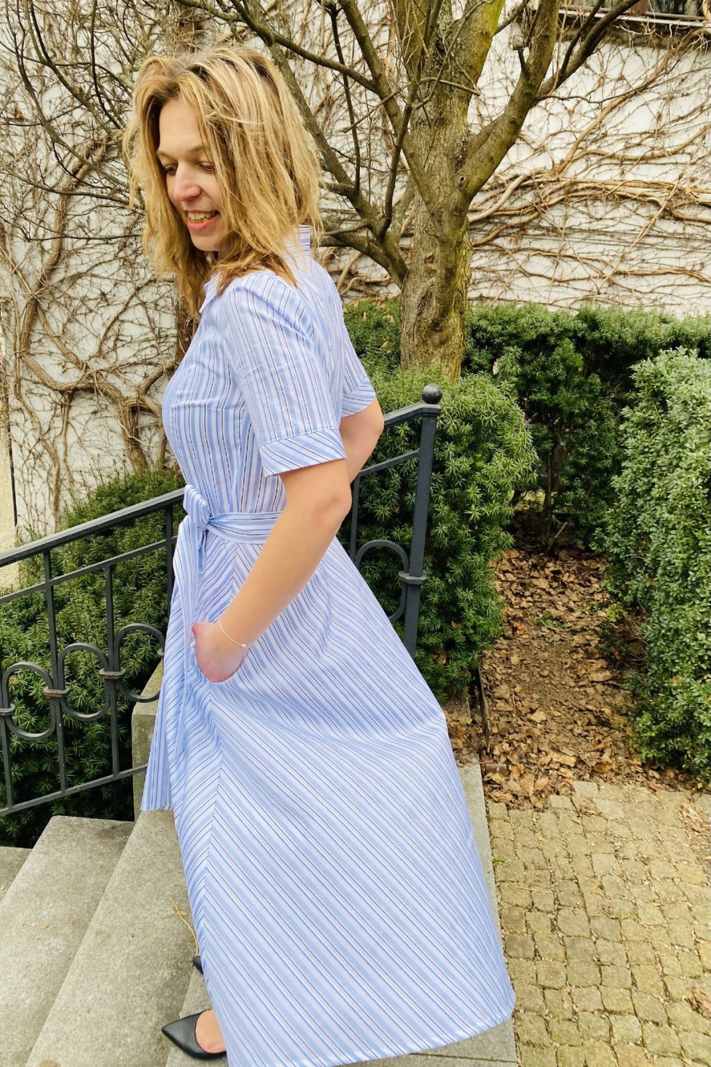 Šaty lze nosit volně, případně v pase převázané opaskem, který je součástí šatů.