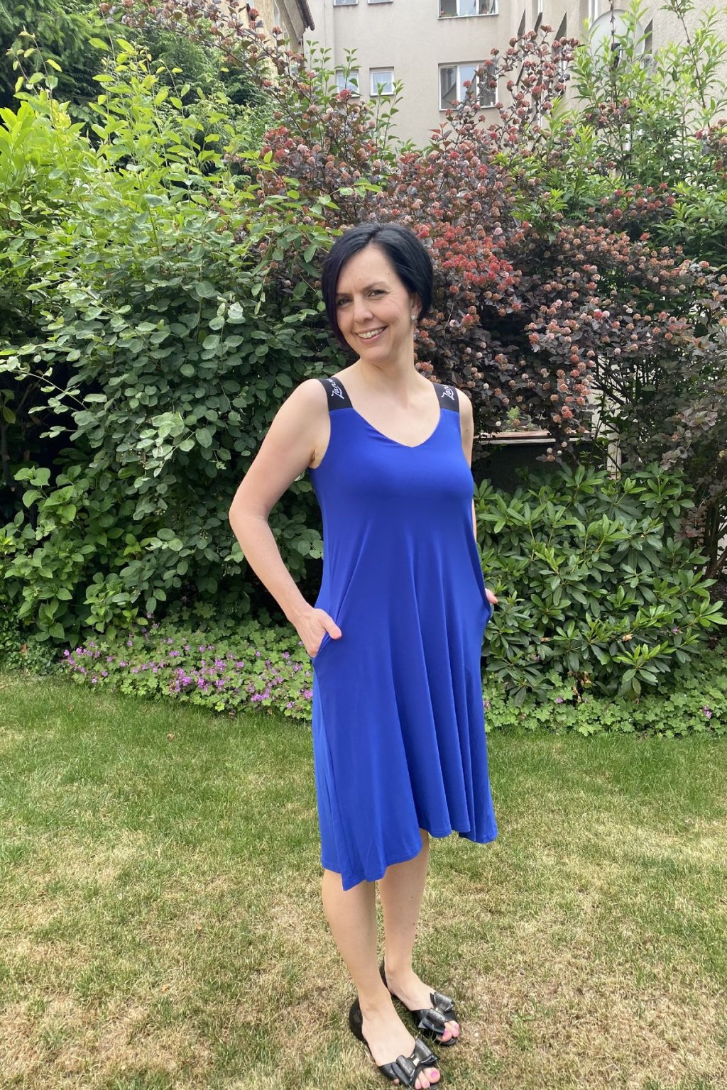 Vzdušný střih s kapsami v bočních švech. Mají dvojitý horní díl, který zvýrazní siluetu a zároveň je možné šaty nosit i bez podprsenky.