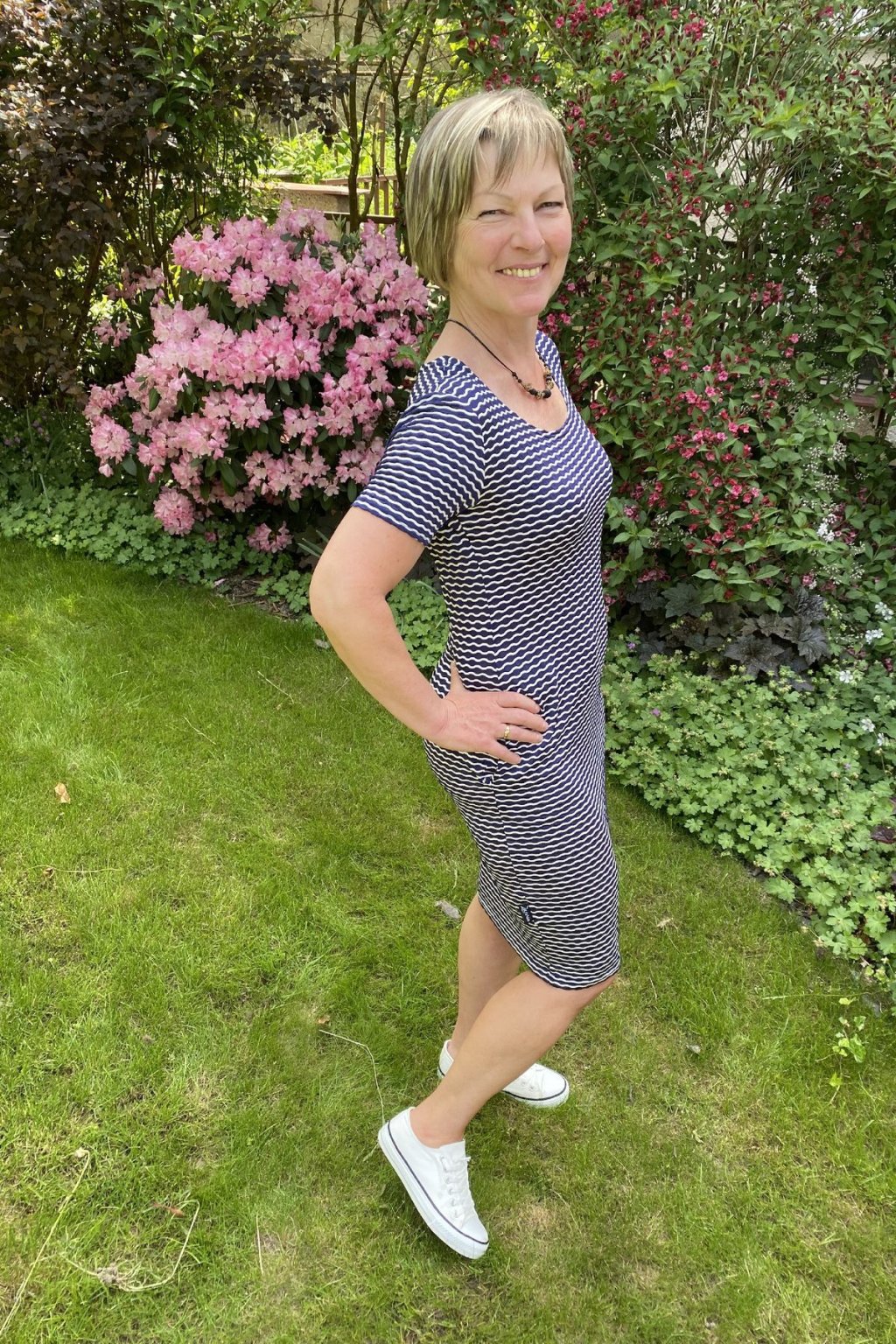 Tyto pohodlné šaty jsou ušité z úpletu.